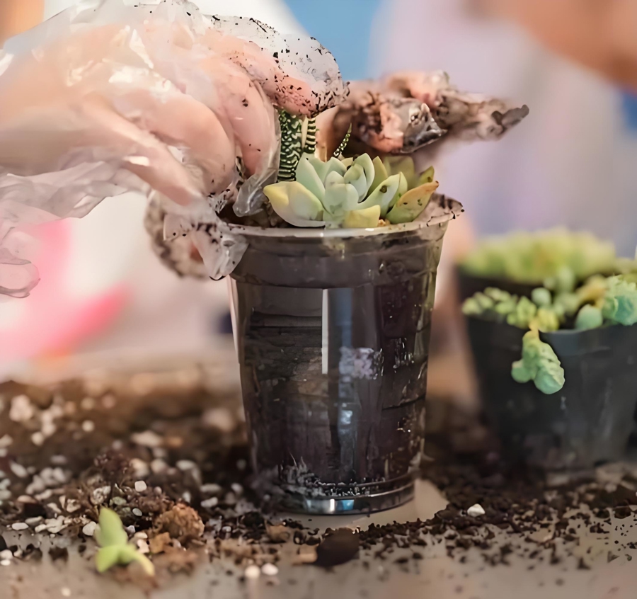 静安区的植树节活动中,最受欢迎的当属咖啡渣盆栽工坊。参与者用石门二路街道内众多咖啡店回收赞助的咖啡渣、咖啡杯及小绿植等制作咖啡杯盆栽,将咖啡渣变成了孕育绿色的“天然法宝”。