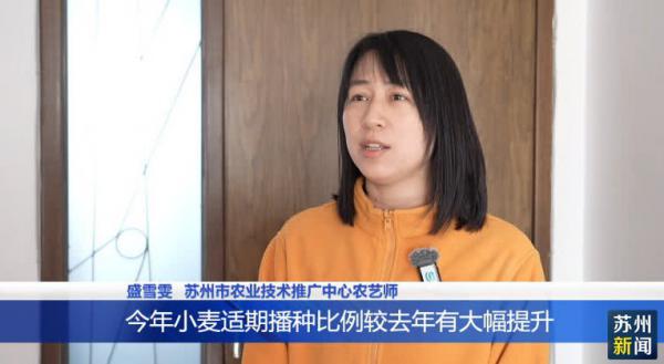 苏州市农业技术推广中心农艺师盛雪雯表示,今年小麦适期播种比例较去年有大幅提升,整体秋播质量较好,苗情基础稳健,对基肥施用量不足的田块要尽早补施苗肥或分蘖肥,对于内外沟系不到位的田块要尽早配套补齐,确保旱能灌,涝能排。
