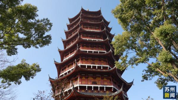 苏州有不少地标建筑,但北寺塔绝对是其中独一份的存在,北寺塔是报恩寺塔的俗称,始建于南朝梁时,如今的北寺塔八面九层、重檐复宇、朱栏萦绕、气势非凡。