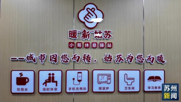 目前,姑苏区已构建起覆盖核心商圈、餐饮集中区的15分钟暖“新”服务圈,让骑手“累了能歇脚、饿了能就餐、渴了能喝水、急了能求助”。