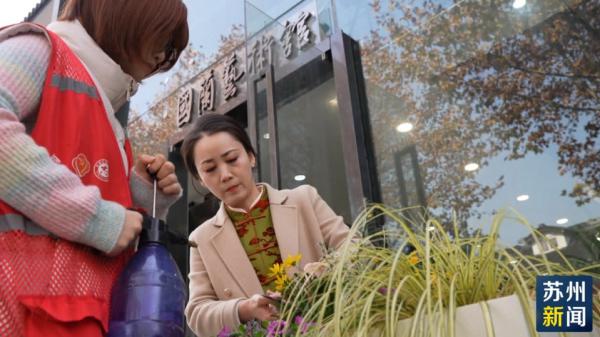 最近,苏城寒意渐浓,在十全街中段闹中取静的国兰艺术馆外,主理人戚莉萍正俯身打理着公共区域的绿植。