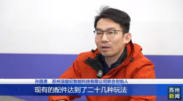 苏州深庭纪智能科技有限公司联合创始人孙国勇介绍,这个双轮足户外陪伴机器人,它的构型相对简单,电机也少,由于它主要靠直驱轮毂电机在运动,所以肩部电机的寿命就会比较长,因为少了一半的电机,成本也比较低。主要场景用于户外,譬如跟宠物在一起玩的功能,它可以把球给宠物或者跟宠物一起抢球。