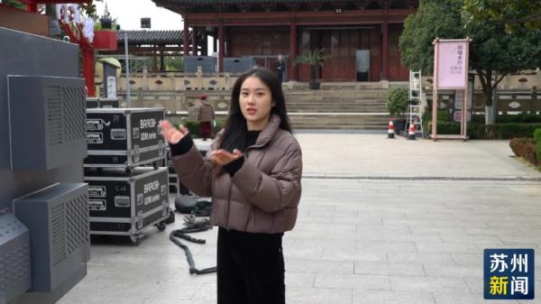记者李子洋介绍,现场已经放置了许多的灯光设备,跨年活动的那天晚上就是通过这些灯光设备,将光影投射到瑞光塔上,从而打造一场3D视觉盛宴,将苏州2500年的历史文脉与城市精神,浓缩为一场跨越时空的光影盛宴。