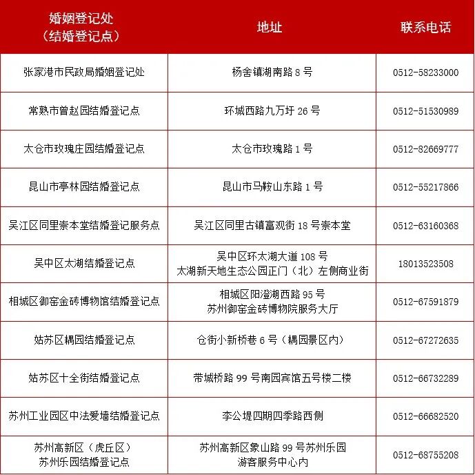 婚姻登记业务咨询:0512-55217866、55216856