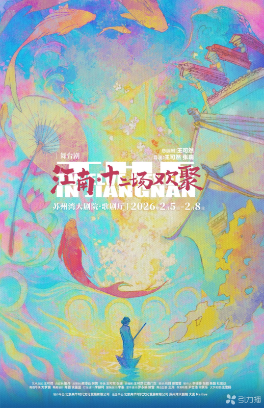 央华戏剧年度大戏《江南·十二场欢聚》海报。吴江文旅集团供图作为重新定义舞台剧形态的大型创新之作,舞台剧《江南·十二场欢聚》由央华戏剧联合吴江文旅集团、大麦等头部力量共同打造,以吴江垂虹文化为核心原点,串联蚕桑丝绸、莼鲈乡愁、诗词雅韵等江南文化密码,构建出“衣食住行”的叙事脉络。