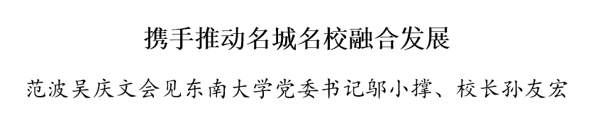 1月25日,市委书记范波、市长吴庆文会见了东南大学党委书记邬小撑、校长孙友宏一行。