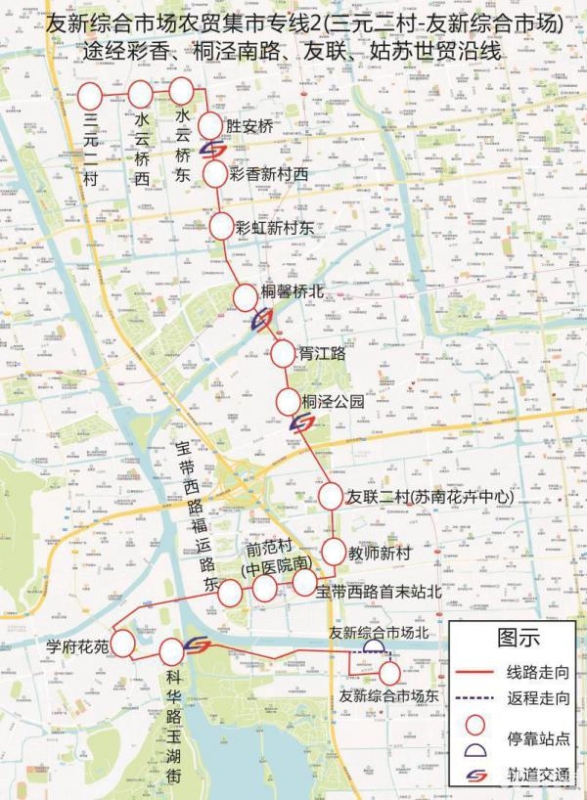 除了南环桥批发市场专线,3条“友新太牧年货专线”也将同步运营,方便市民前往友新综合市场采购。其中,专线1(南环新村-友新综合市场东)和专线2(三元二村-友新综合市场东)运营时间为2月1日至2月15日,专线3(桐泾公园-友新综合市场东)运营时间持续至1月31日。各线路均设置多个班次,满足不同时段出行需求。