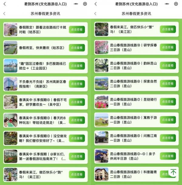 除了市级层面,苏州各板块还推出了各具特色的春假活动。具体信息可在“君到苏州”文旅总入口查询。