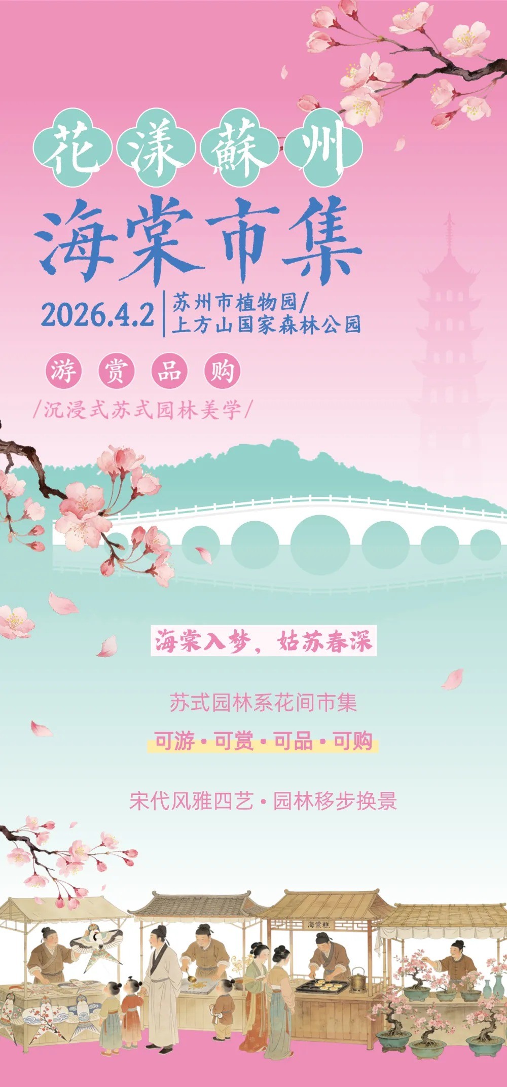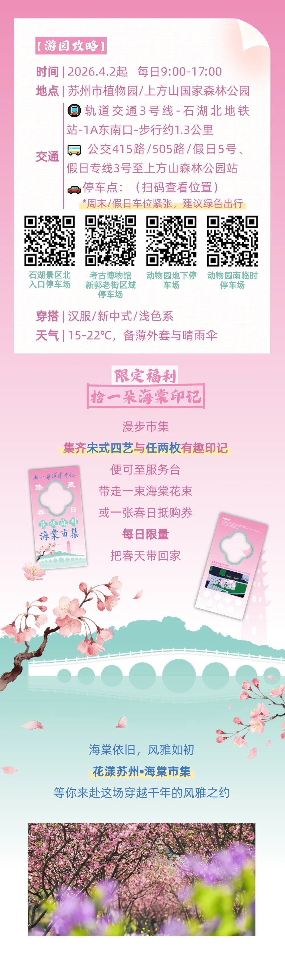 好消息来啦,可游、可赏、可品、可购,4月2日(周四)上方山国家森林公园苏州海棠市集就要开市啦!