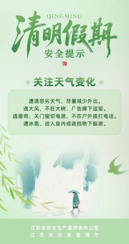 时值祭扫高峰,假日期间无降雨,风力偏大,火险气象等级高,注意加强火源管理,文明祭扫!