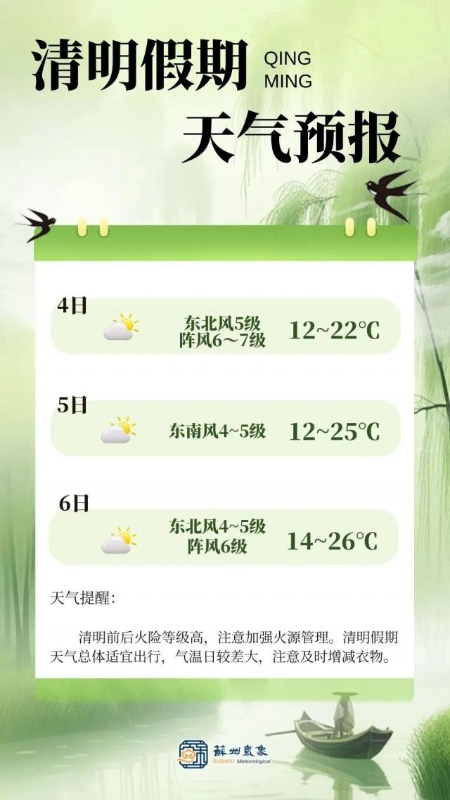清明假期,苏城天气以多云为主 ,气温12~26℃,整体适宜!