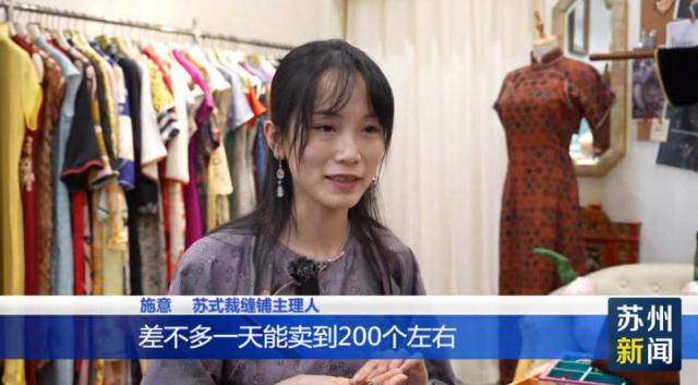 苏式裁缝铺主理人施意介绍,差不多一天能卖到200个左右,他们做文创产品是从零开始,市场反响超出预期,每天打开工作群,就是线上的订单要发货。
