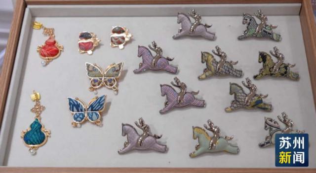 “90后”施意是非遗技艺苏州宋锦的传承人,这几天,她的小店迎来一波密集上新。前阵子,她为马年主题设计的宋锦胸针,在互联网上火出圈,成为炙手可热的文旅产品。施意趁热打铁,围绕江南主题,又推出了一系列文创新品,粉嫩饱满的桃子挂件、水乡特色的莲蓬香囊,这些结合了江南意象和宋锦面料的创意设计,一经推出,受到不少年轻消费者的喜爱。