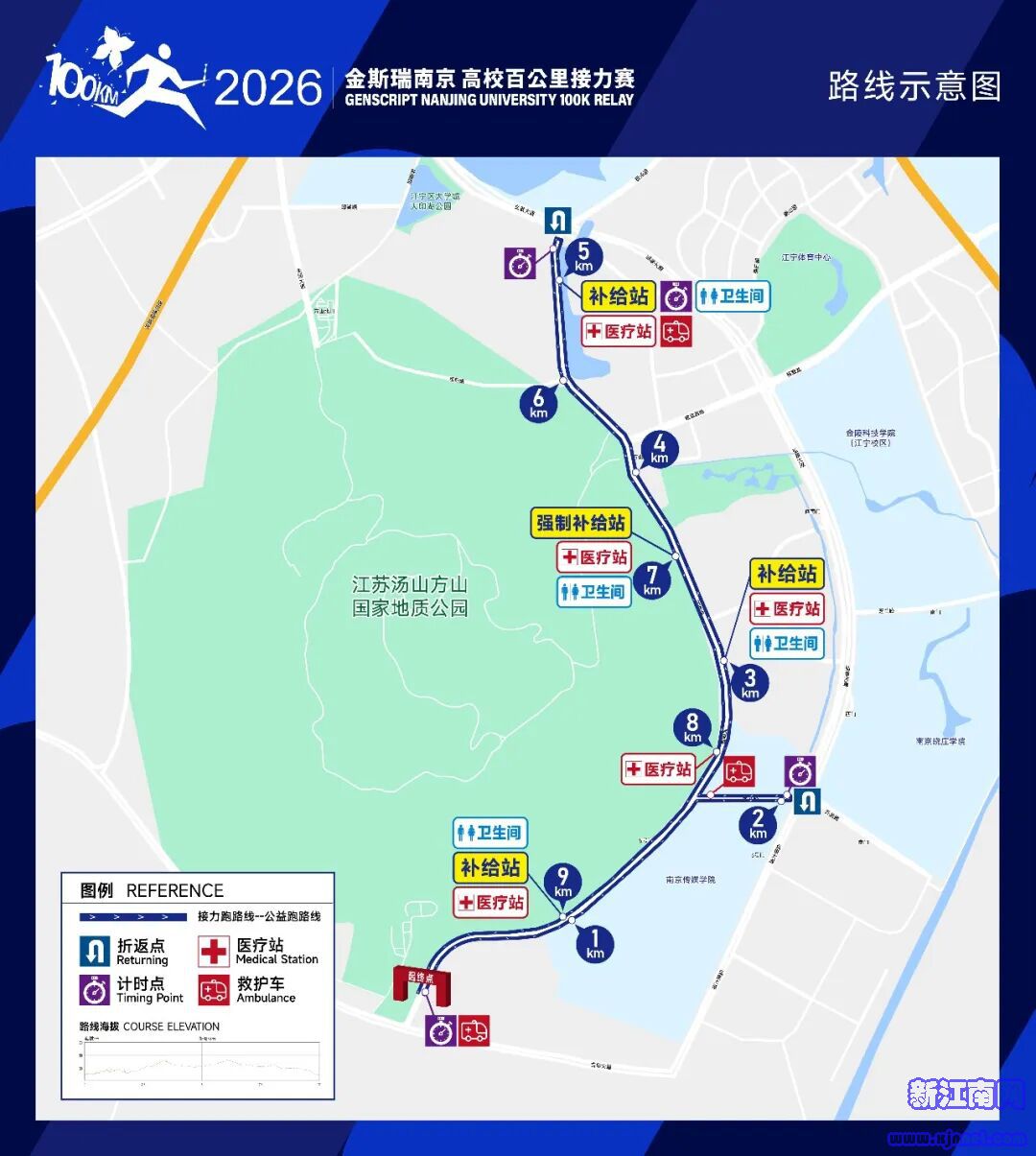 2026金斯瑞 南京·高校百公里接力赛路线示意图