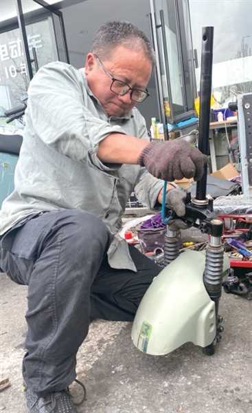 女儿刚坐下准备和我说一会儿,老王显得不太好意思,摆着手说:“你不要打扰,快去帮你妈妈。”1998年老王来到杭州,租了个房子,找不到专业对口工作,无奈去萧山一家自行车厂上班,他不敢说自己大学毕业,觉得大学生去厂里打电螺丝别人会瞧不起。老板看他老实,经常会提些不错的建议,安排他做质检。“2000年左右,电动自行车慢慢流行,厂里也打算生产电动车,安排我去上海学习。”2002年,老王参加中国电动自行车技术培训,拿到证书,在文泽路租了个小店面卖电动车。