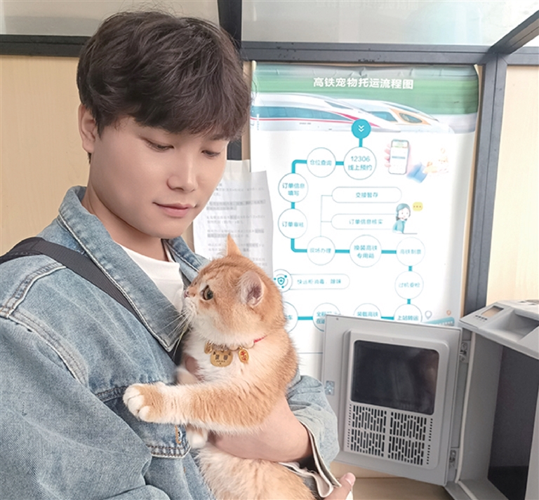 张先生的英短金渐层张先生说,现在养宠物的人多,高铁宠物托运服务非常必要,杭州回武汉有700公里,带宠物开车不如高铁和飞机快。4月16日,记者致电12306上登记的“上城区动物防(检)疫站”,了解到为猫办理高铁托运的“动物检疫证明”确实不需要做“狂犬病抗体筛检”,但狗需要做。养了10年的宠物狗独自坐高铁去郑州上午8:09,55岁何女士带着宠物狗来到了宠物托运点,是只雪纳瑞犬。何女士说狗狗叫妞妞,它妈妈是流浪狗,10年前她收养了这只小狗。妞妞就像她的孩子,它的床就在她的床边,晚上“妞妞”要等她睡着了才会睡。“我是做花艺的,常会通宵干活,妞妞就一会进房一会出来找我,出门不和它打招呼说再见,它会在家生气,隔着门叫,我们回家它会表现出不高兴,出门和它说再见,让它在家要乖乖的,它在家就很安静,我们回家它会迎接,趴在我腿上让摸摸它。“女儿女婿在郑州,女儿怀孕4个月,情绪不是很稳定,妞妞能稳定女儿的情绪,今天让妞妞独自坐高铁去郑州陪女儿。”何女士办好托运手续,完成宠物交接,仍依依不舍,一直和妞妞说话。她发现高铁宠物箱智能屏显示温度21.8℃,早上凉,妞妞的毛衣忘记脱,想给妞妞脱毛衣,又担心妞妞出来不肯再进去,非常纠结,最终在女儿要求下,妞妞脱了毛衣又乖巧地进入宠物箱。何女士说,她4月13日下午3:55去上城区动物防(检)疫站办的“动物检疫证明”,办证明前先去了瑞派虹泰宠物医院浙江总院做了狂犬病抗体筛检,筛检免费,上城区动物防(检)疫站收了狂犬病筛检单,给妞妞拍了照,对宠物包消毒,填写各种资料,很快就拿到了“动物检疫证明”。何女士的女儿告诉记者,这次妞妞单独乘高铁的手续是她线上预约的,申请时要提交发货人及收货人身份信息。“我对高铁宠物托运服务打满分,这次妞妞单独出行托运费558元,如果人和宠物同行,宠物托运费还能打七折。我咨询过汽车运输宠物,杭州到郑州要800元左右,比高铁慢得多,要两天。我发现有些国家高铁开通了AB座,人宠不分离,希望我国的高铁今后也能推出这样的服务。”