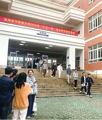 都市快报讯 昨天和今天,对很多高三学生来说是很重要的日子。全省20多所高校举办2026年三位一体综合评价招生综合素质测试环节,很多高三学生要忙着赶考。浙江工业大学和杭州电子科技大学昨天分别举办三一综合素质测试,成为浙江高三家长关注的焦点。爱写作的狮子记者分两路,从两所大学现场带来最新信息。第一批考生9点多走出考场今年考题聚焦离身智能和具身智能8点不到,浙江工业大学朝晖校区门口人来人往,校园里不少穿马甲的志愿者正在给家长和考生做引导。家长可以陪伴考生到检录处,接下来考生只能单独入场。志愿者在一旁举着扩音器通知:“请各位考生不要带多余物品,拿上身份证和准考证就可以了,电子产品都交给家长就好。”进入考场后,考生先进行排队抽签。据现场工作人员介绍,上午的考生会分成两批,第一批在8点40分左右、第二批在10点20分左右开考,每一批次再分成不同小组,每组有10来名同学。学校在考场附近张贴着“考生完成时间查询”二维码,家长扫码后输入考生身份证号,就能查询到考生面试时间,方便提前做好接送安排。进考场前,有位考生穿了学校校服的薄款外套,旁边一名热心家长看到,立马上前提醒:“校服外套不要穿进去,有明显标识被判定透露个人信息,面试可能会没有成绩。”9点多,就有第一批面试结束的考生走出考场。苍南中学黄同学介绍了面试流程:“进去后先在一个大厅里集中等待,等待期间工作人员会发材料,A4纸大小,内容是关于离身智能和具身智能,还介绍了多智能体协同的分工模式,大概能阅读20分钟,时间到了后会带你去考场进行面试。考场里的几位考官看起来都挺和善的,问题都是基于之前看的材料,也有一些个性化问题,总体感觉还行,每个人大概面试10分钟。“我三位一体就报了浙工大一所,没特别准备,也没报过培训班,之前网上看到面试的问题主要靠日常的积累,等下就坐高铁回家,要加油备战高考了。”大部分考生走出考场时状态不错,对刚刚的发挥比较满意,父母也递上精心准备的一束花或是一杯饮品,说一句“辛苦了”。也有一位考生略显遗憾,和妈妈说:“看的材料是具身智能,结果考官提问时太紧张了,回答的内容都是围绕人工智能了。不过后面想办法转回来了,希望不会影响面试成绩。”有家长在计划快速赶考现场有不少考生是上午参加浙工大面试,下午参加杭电面试。从现场情况来看,如果抽签到上午靠后的批次,出考场就要快12点了。杭州电子科技大学下午组考生报到时间为11点11分至12点10分,12点40分以后不能进入考场。有些家长看了看“考生完成时间查询”里显示的时间,当即放弃。也有家长在计划,孩子最晚什么时间出考场,还能够赶得上。绍兴家长王女士说:“我们是开车过来的,我查了一下导航,两个学校距离20公里,开车不堵路程大概30分钟,我和孩子爸爸‘里应外合’,他在车上就位,这边一结束就让他提前把车开到校门口,我带孩子迅速上车。”另外一位早上坐地铁过来的家长,提前约了辆专车,司机已经在学校附近等候。从上周开始,浙江省属高校密集开始三位一体测试,一位家长笑着说:“孩子当时入围了四所学校,看到一所通过就马上交报名费,先交钱再说,虽然最后也只能选一所,但还是想让孩子多尝试尝试。”旁边一位家长说:“现在升学路径也多,三位一体、强基计划等,有时候对这些政策也不是很了解,不知道适不适合孩子,很多时候都是看到网上消息,才匆匆忙忙地报上。”温州家长黄先生说,现在考试这么多,本来都不想折腾,又想着不能后悔,前两天还给孩子去机构报了三位一体培训班,两天的课花了近4000元。宁波陈同学学考拿到了8A,比较擅长理科。妈妈说:“他化学单科特别好,平时都是97、99分的,孩子很喜欢浙工大的校园环境,昨天来报到的时候,又里里外外逛了一圈。下午打算再去参加西湖大学的创新班,但听说笔试难度不小。”有位杭州的家长,孩子学考拿到了9A,这次报名了浙江工业大学和宁波诺丁汉大学。“省属就报名了这两所学校,后面想试试浙江大学的三位一体,考浙大海宁国际校区的专业,因为宁波诺丁汉大学三一是英文面试,可以让他提前做个准备。”不少学生首考成绩超400分杭电被誉为最强双非院校之一。参加面试的同学都很优秀。现场问了一圈,首考分数在400分以上的有不少,还有考生的首考分数超410分。不少考生面对镜头落落大方,表达流利,逻辑清晰。宁波慈溪的一位家长说:“孩子报了电子通信专业,因为哥哥是川大研究生毕业的,在华为工作,小儿子也喜欢上了这个专业。”杭高钱江的一位考生家长说:“孩子首考412分,二模在学校排名大概16位,这次孩子自己要求来考试,他也打算报浙大三位一体。不过,男孩子你也知道的,我们就担心他语文没考好,语文是很拉分的。”上午面试聚焦可控核聚变杭电三位一体的综测形式是半结构化形式,1个考生面对5个考官,考官将根据考生的材料分析、互动问答等形式,考查学生的学习能力、科学与人文素养、分析表达能力、逻辑思维与推理能力、心理素质和社会关怀、创新思维等方面的内容。从上午部分结束面试的考生口中了解到,杭电今年面试题目聚焦可控核聚变、人造太阳等。德清浙工大附中的一位考生,穿着帅气西装来面试,说话也风趣。他面试的是计算机专业,他说在这个正式的场合穿上西装,显得