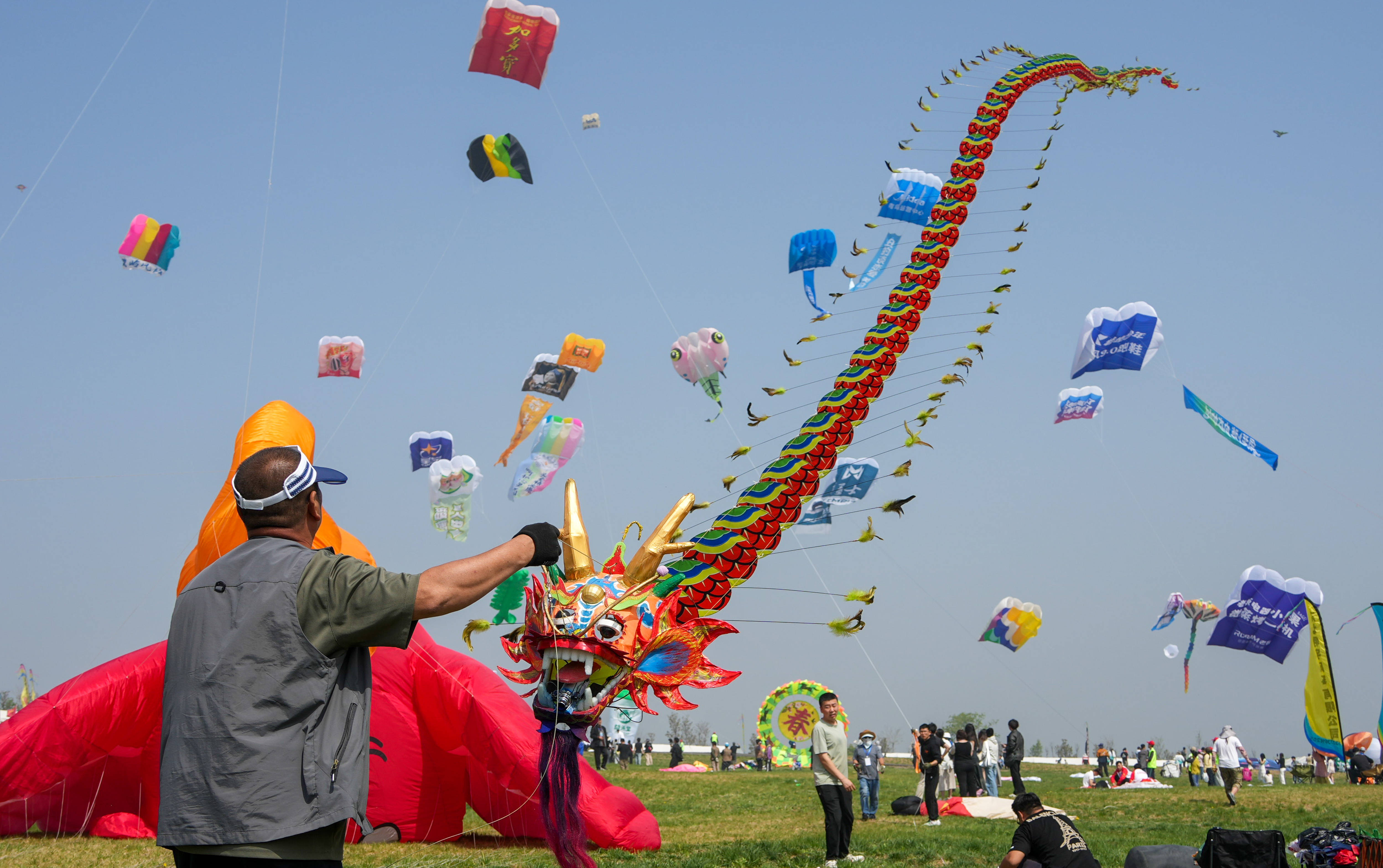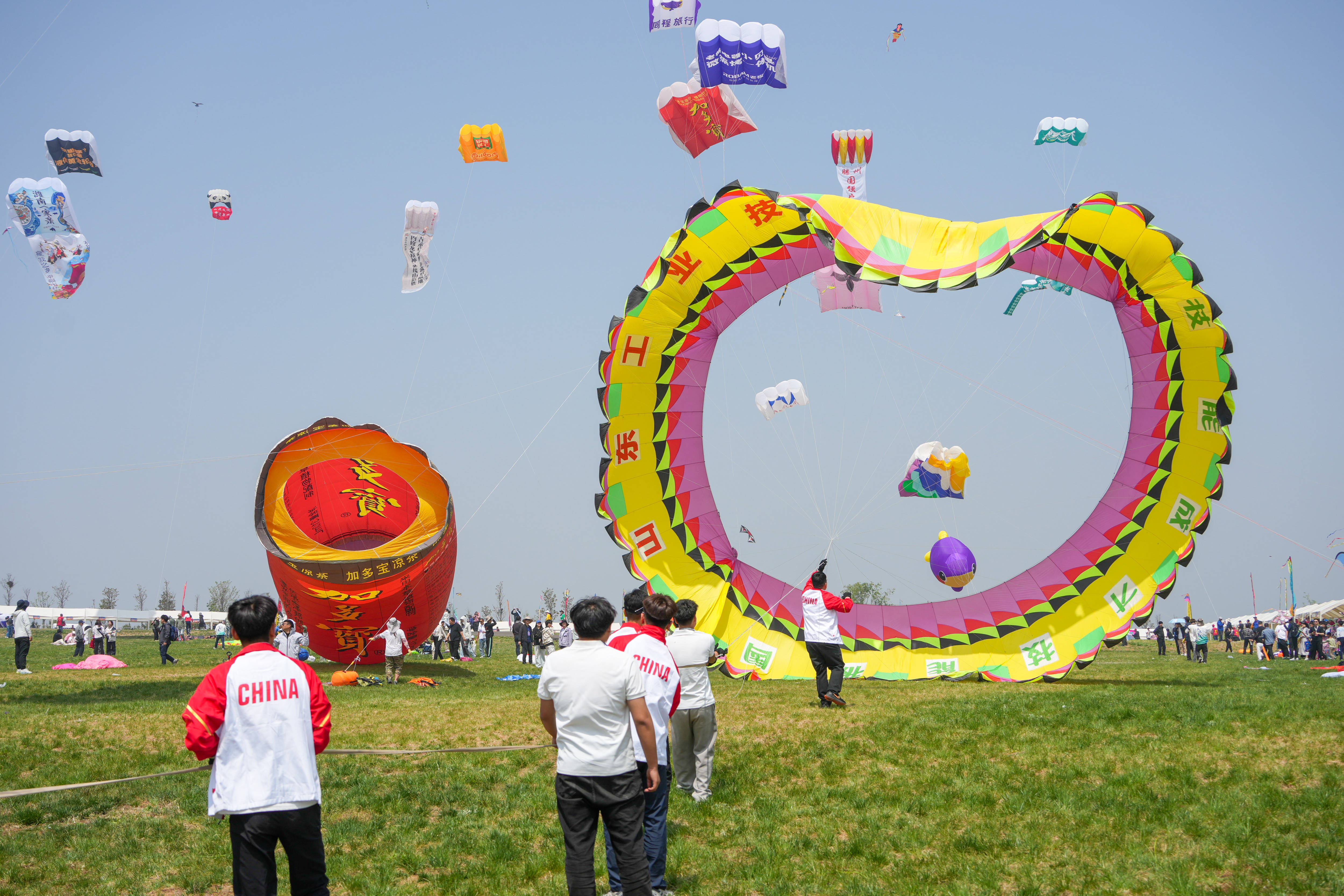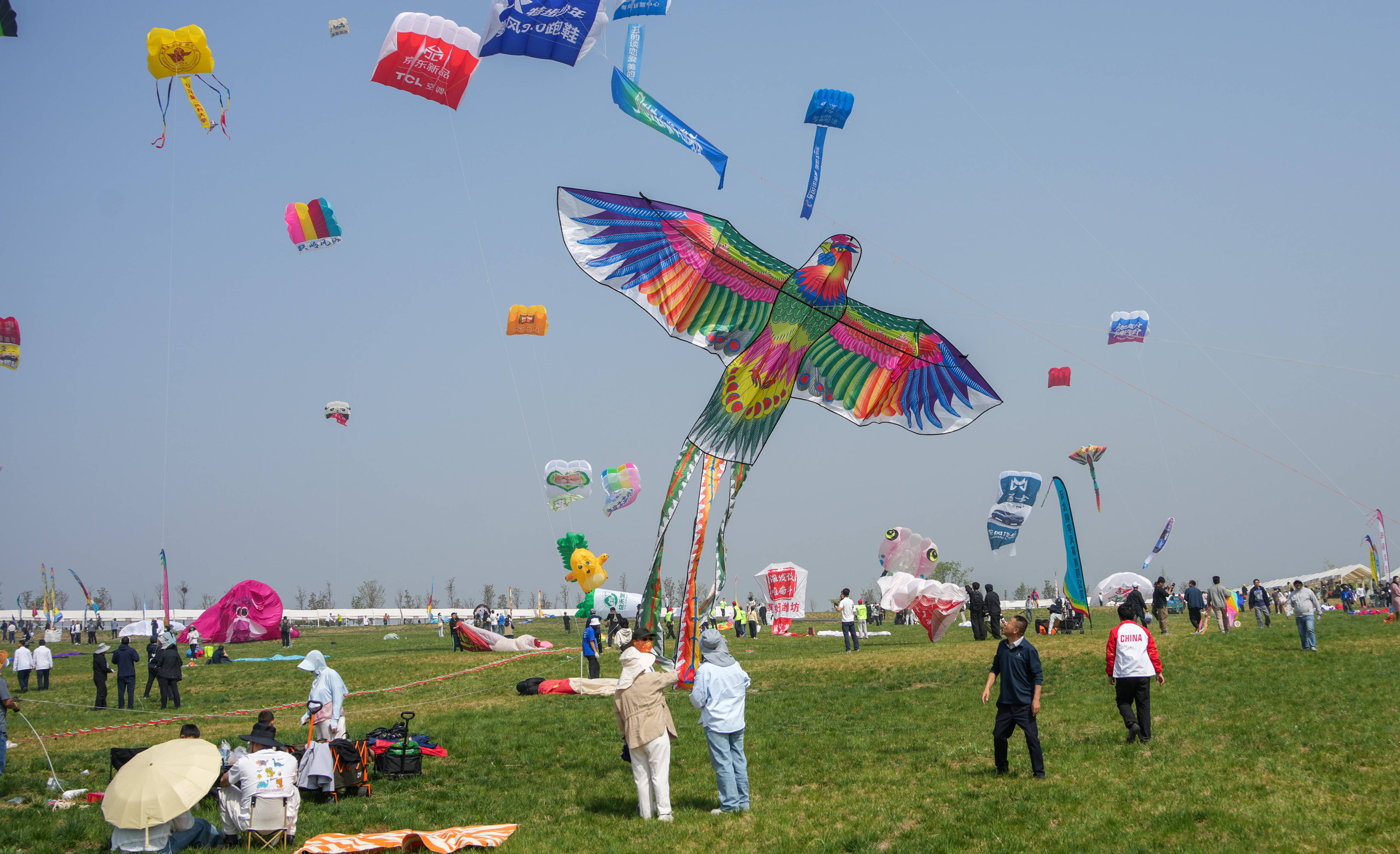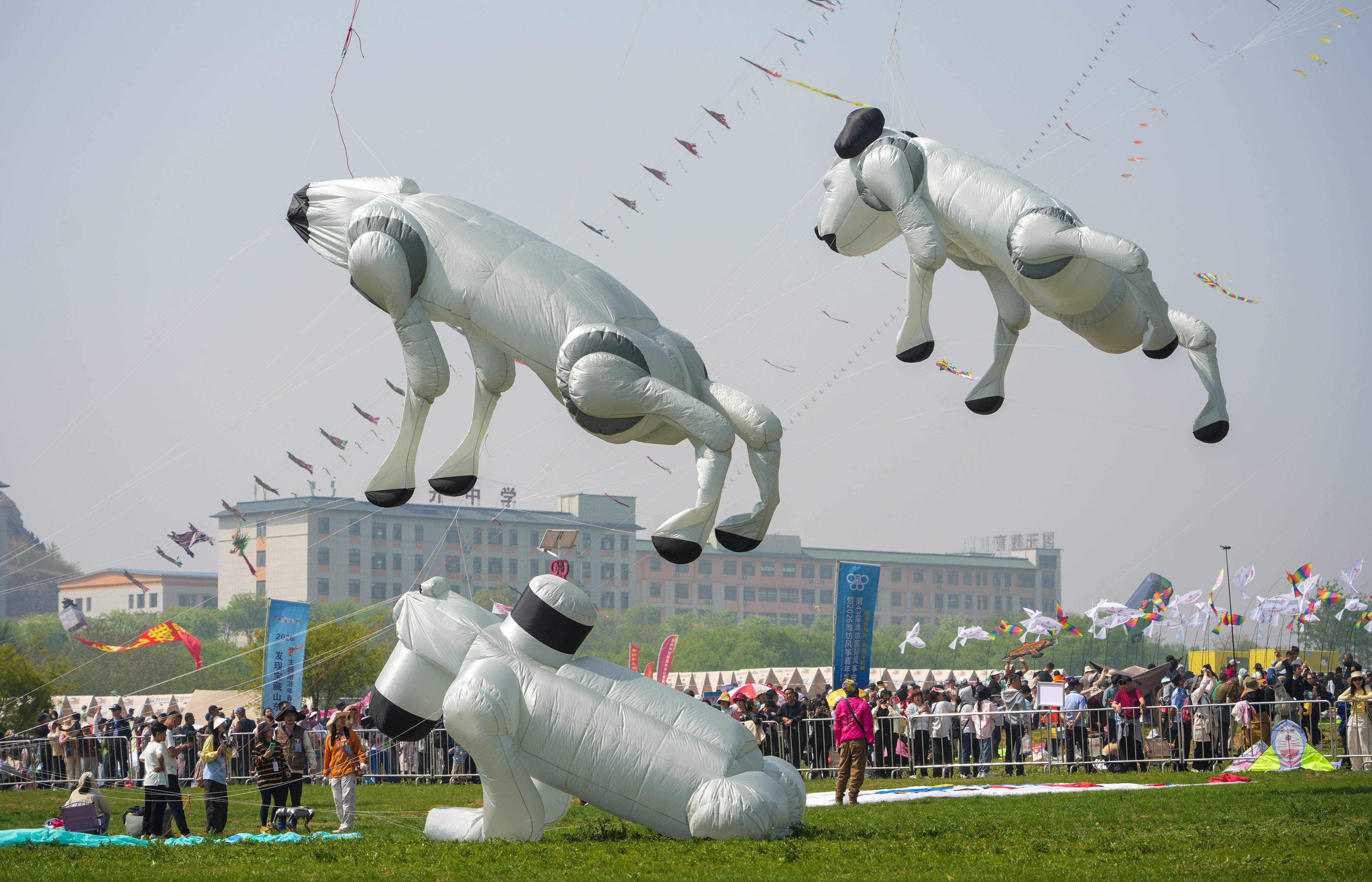 4月18日,第43届潍坊国际风筝会在山东省潍坊市世界风筝公园开幕并举行万人风筝放飞活动。