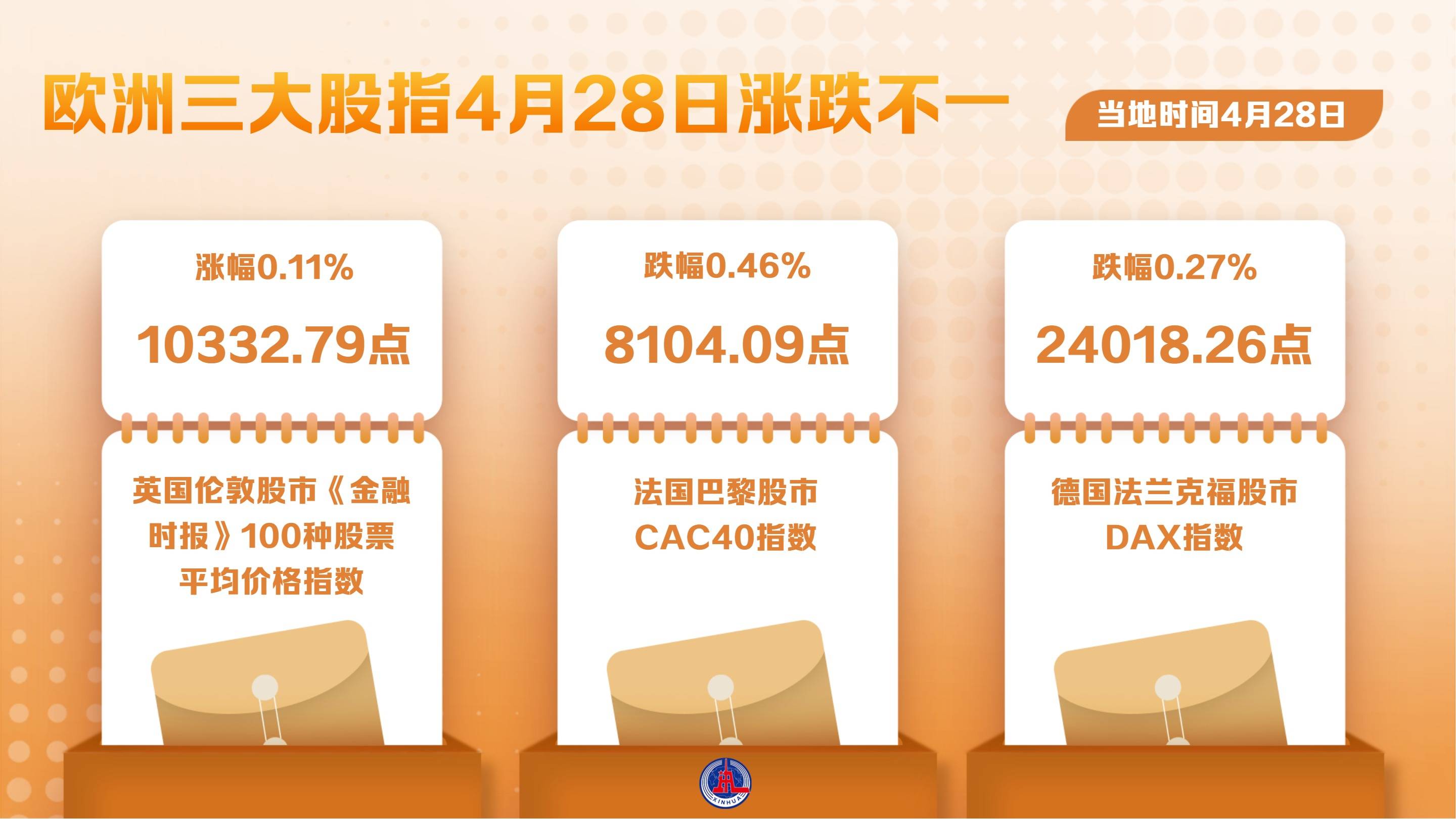 欧洲三大股指4月28日涨跌不一