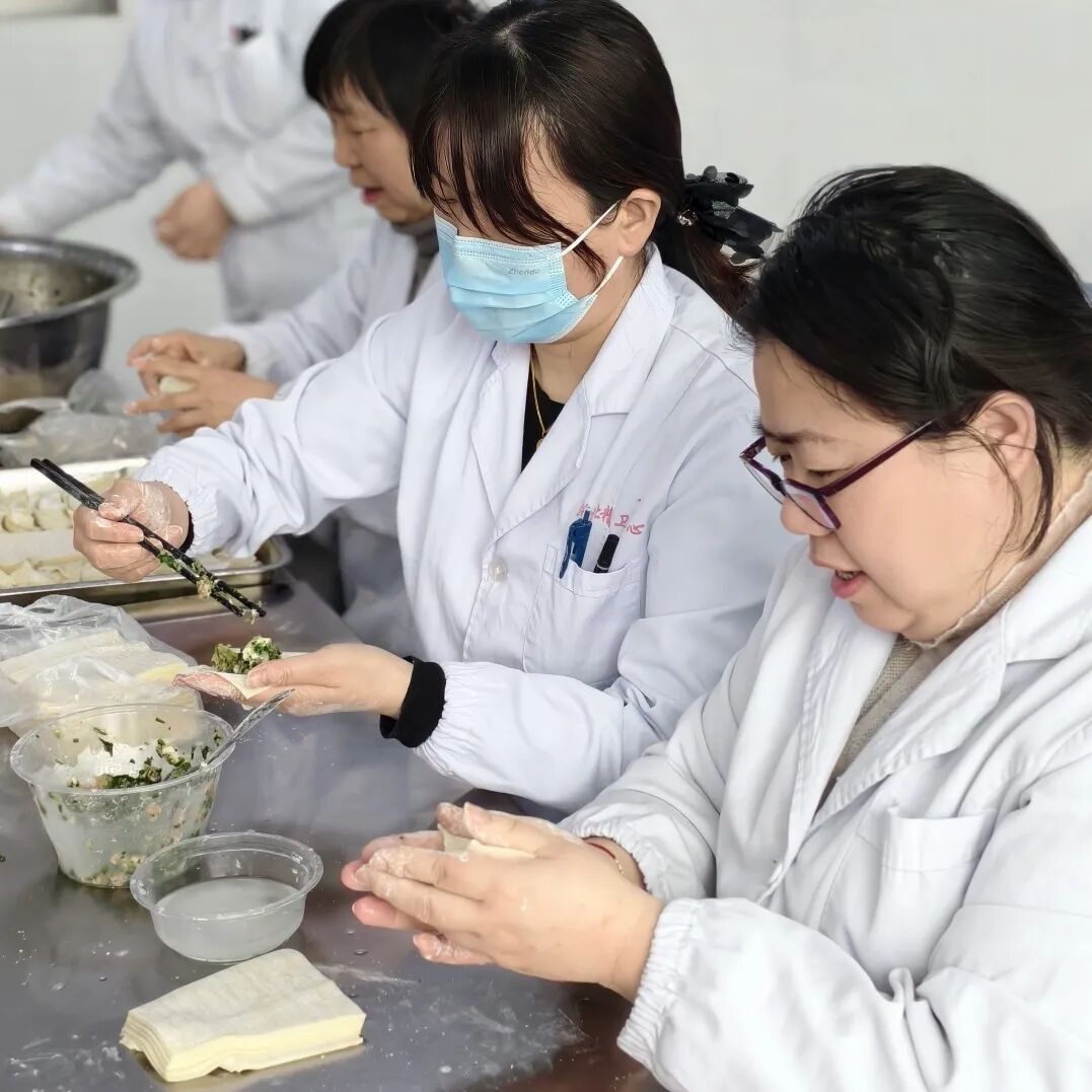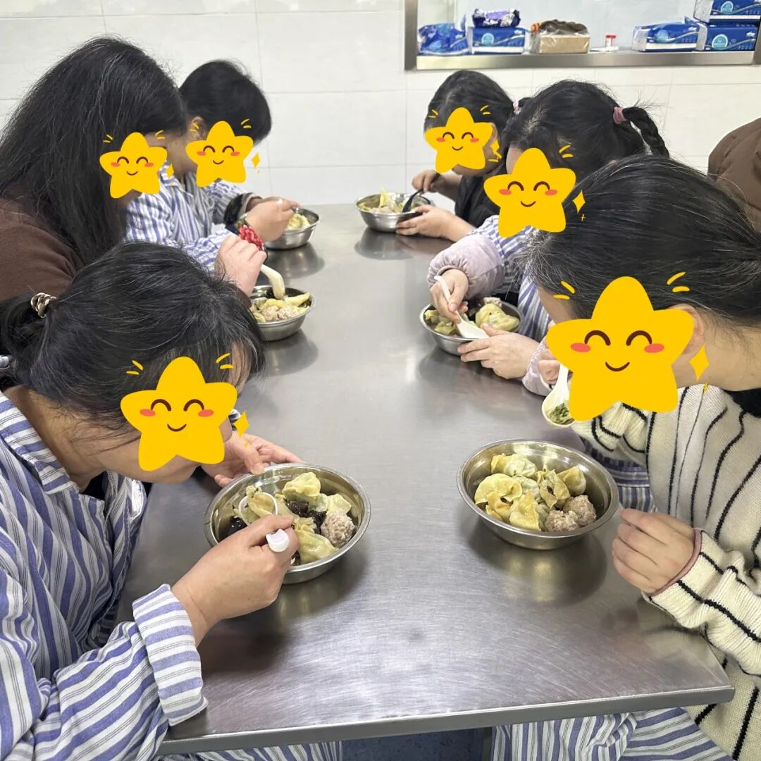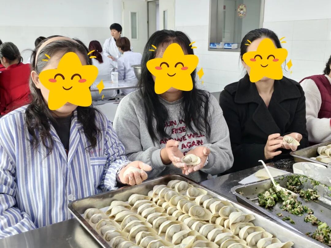 医护人员手把手教患者包馄饨,每一个步骤都充满了耐心与关爱。热气腾腾的馄饨端上桌,大家围坐在一起,共享这顿充满暖意的团圆饭。
