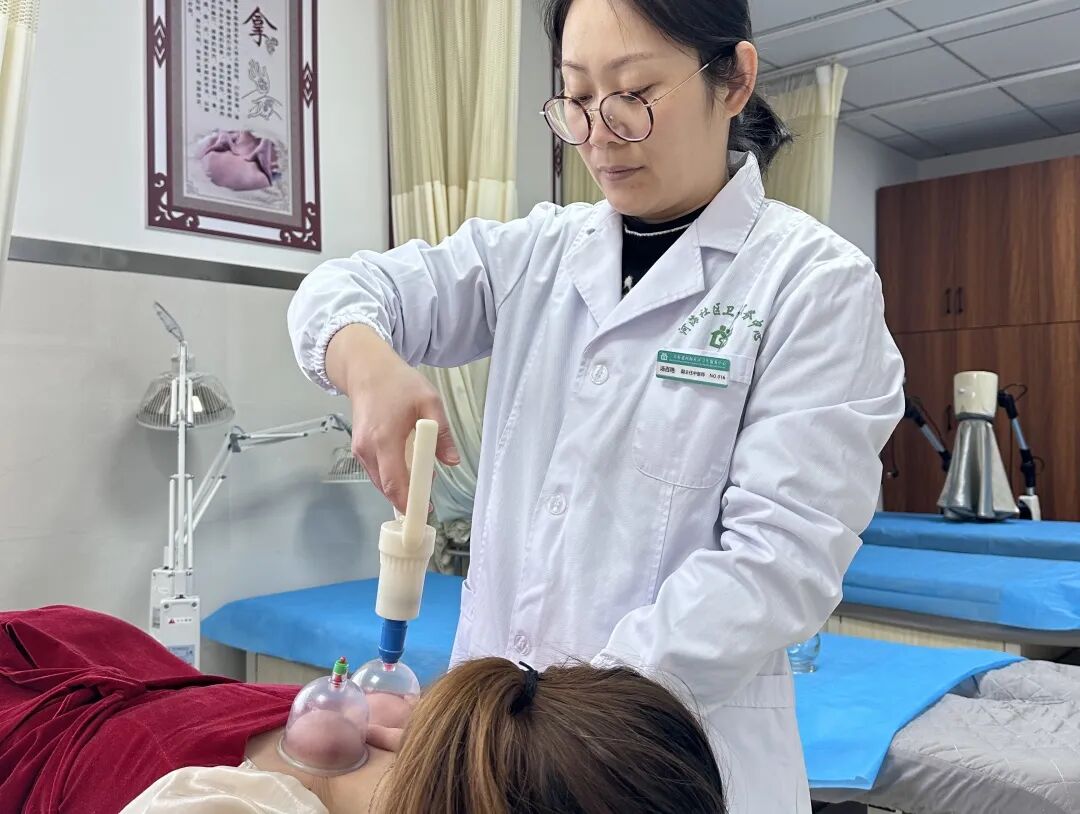 副主任中医师汤百艳为肩颈痛的患者进行拔罐治疗。众多上班族因为工作压力大,遭受着肩颈痛的困扰,而中医适宜技术能够有效缓解肩颈痛症状,受到了广大患者的青睐。