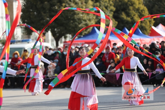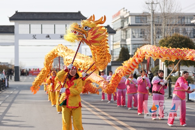 21日,在赣榆区墩尚镇,人们在“二月二龙抬头”民俗表演活动中表演传统民俗节目。