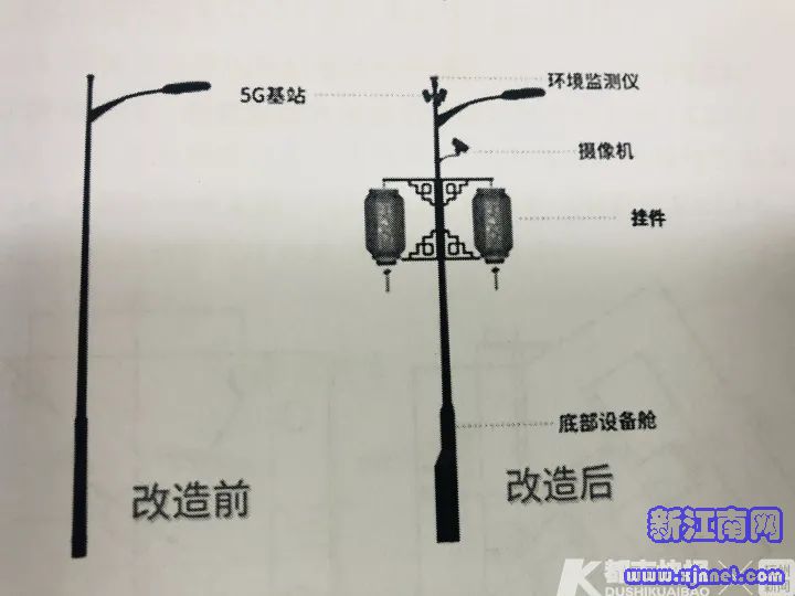 像环城北路、体育场路、东新路、江陵路等路段的100盏路灯安装了空气质量监测器,专门用来检测道路上的扬尘,而九堡大桥、复兴大桥上的路灯则全部安装了5G微基站。