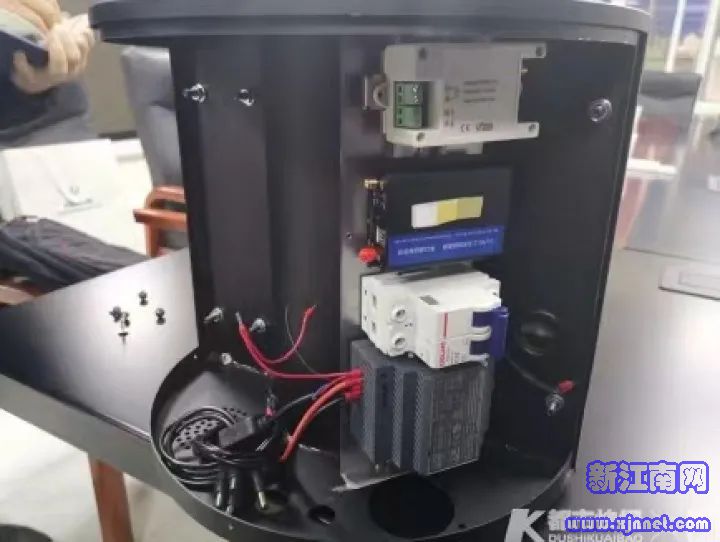 最下方,是一块触摸电脑,可以查询周边景点、地铁站、公交站、公厕等公共设施,还能直接导航到目的地。旁边的USB接口用以充电。