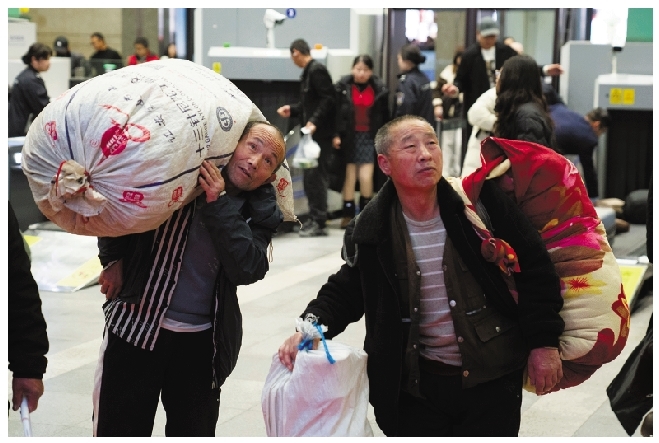贾先生和妻子刘女士踏上了开往黑龙江的列车。一路从福建出发、辗转杭州,算算路途还要再花30多个小时,贾先生早已归心似箭了。“老妈、孩子都在等我们回去过年,老家的饭菜香啊,能不着急吗?”贾先生笑笑说,今年活干得多,收入还可以。一旁的妻子也跟着点点头,开心地说:“出来一年,满足了。”这几年,孩子长大了、独立了,刘女士便跟着丈夫南下务工。“以前两个人分开,一个在家,一个在外面,总是放心不下的。两个人在一起打工就不用彼此牵挂了,心里有底,赚钱就有动力。”刘女士说。
