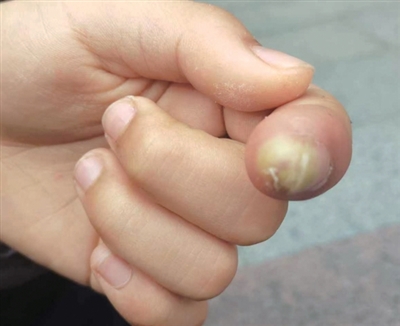 春节前夕,11岁女孩小雨的左手食指被异物刺了个微小伤口,次日出现红肿疼痛。家人以为是普通感染,带她到附近医院皮肤科就诊。外抹了几天抗感染的药物,症状非但没有缓解反而加重了,小雨的手指肿胀得像个小胡萝卜,轻轻一碰就钻心地疼。不久后,指尖还出现了白色脓点。