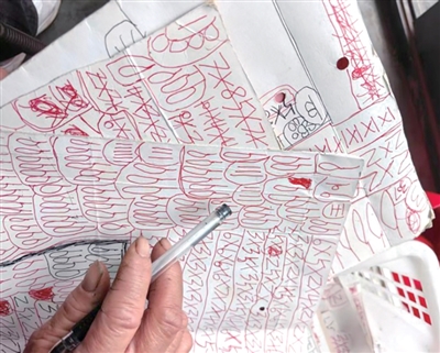 王奶奶不会写字,却从没出过差错。她拿出纸板壳记账本,上面都是“象形文”,圆圈代表鹅蛋,画了8个圈,边上是单价,有7元,4元,5元的,卖了几个就乘几。一个圈加一条竖线是胡萝卜,一条直线表示长豇豆……这样的账单有20多张。