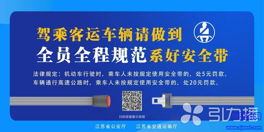 为深入开展“一盔一带”安全守护行动,切实提升客运车辆驾乘人员安全防护意识,江苏全省公安交警部门将会同交通运输部门,全面推动“客运车辆驾乘人员,全员、全程、规范系好安全带”。