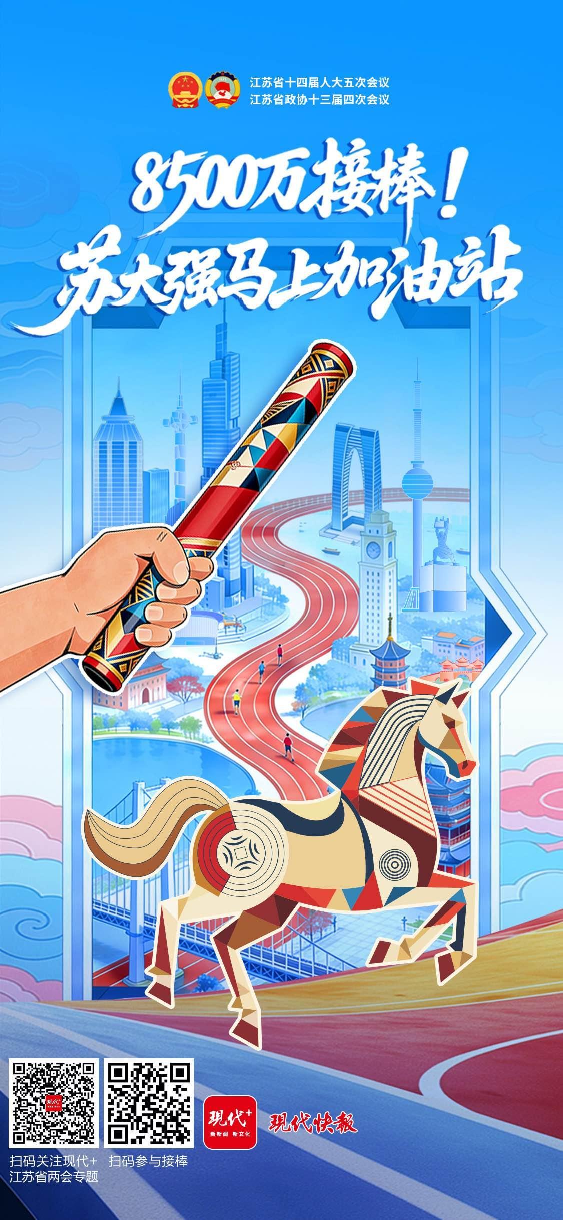 2月1日起,江苏进入两会时间,现代快报策划推出“8500万接棒!‘苏大强’马上加油站”全媒体行动,向8500万江苏儿女发出倡议,一起来接棒!在“十五五”开局之年,全省人民继续牢记嘱托、感恩奋进,为谱写“强富美高”新江苏现代化建设新篇章汇聚磅礴力量。