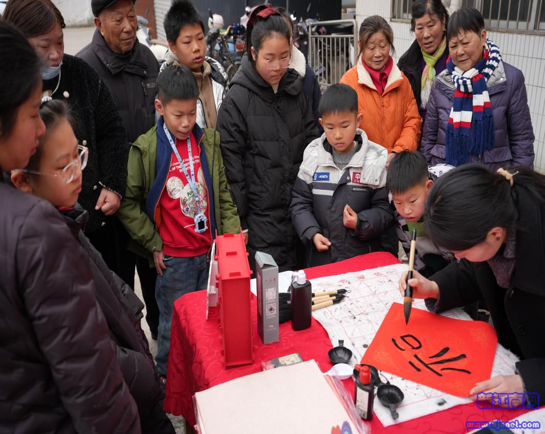 “年画中胖娃娃抱鲤鱼,大家知道寓意什么吗?”“那叫‘年年有余’,图个吉利!”活动现场,新时代文明实践站志愿者围绕春联起源、平仄对仗、年画寓意、贴春联技巧等内容展开互动问答,问题贴近生活、趣味十足。“那上下联怎么分呢?记住‘上仄下平’——最后一个字是三四声的贴上联,一二声的贴下联!”志愿者一边讲解,一边举着对联示例。现场气氛紧张活泼,答对的居民不仅收获掌声,还获得了书法作品集、新春挂饰等小奖品。“既学到了年俗知识,又拿到了新春彩头,这活动办到咱心坎里了!”大家手持春联、年画和“福”字,相互展示合影,红彤彤的春联、金灿灿的福字,交织成动人的迎春画卷让年味愈发浓郁,也让文明新风浸润人心。