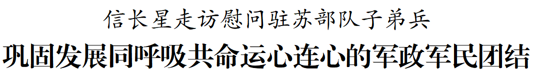 走访慰问中,信长星强调,驻苏部队广大官兵枕戈待旦、向战而行,用热血和汗水书写忠诚担当,为国防建设、地方发展作出了重要贡献。全省各级党委政府要大力弘扬双拥光荣传统,一如既往支持驻苏部队建设,满腔热忱为官兵排忧解难,不断巩固和发展同呼吸、共命运、心连心的军政军民团结,共同续写爱我人民爱我军的时代新篇。