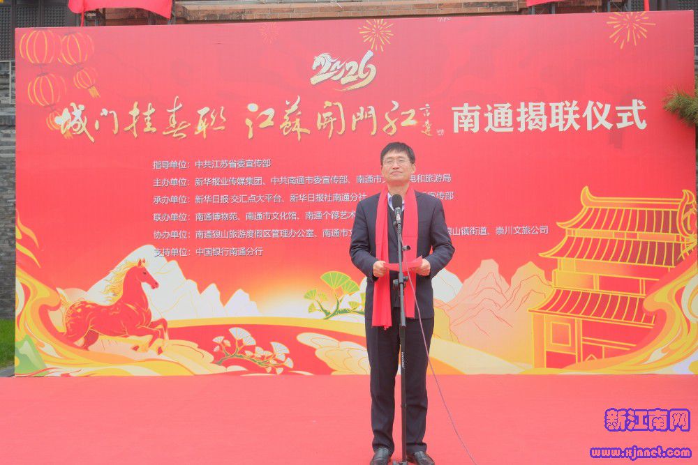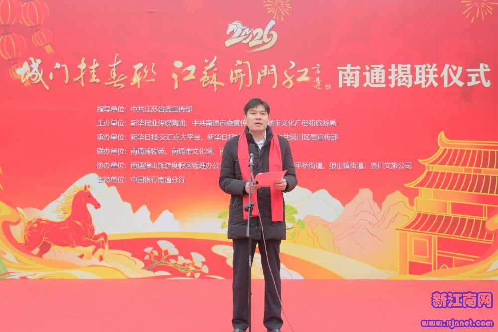 “银蛇摆尾辞旧岁,金马奋蹄跃新程,值此新春佳节来临之际,以‘城门挂春联’这一承载传统、点亮城市的文化盛事,为南通送上新春祝福,为城市注入年味与奋进力量。”南通市委宣传部一级调研员周锦南在致辞中表示,2026年是“十五五”规划开局之年,更是南通凝聚万众之心、激发创新活力的关键之年,南通将以昂扬姿态抢抓机遇、勇毅前行,以实干笃行攻坚克难、争先创优,向着“跨江融合走在前、沿海发展当龙头、万亿城市争进位”的宏伟目标铿锵迈进。