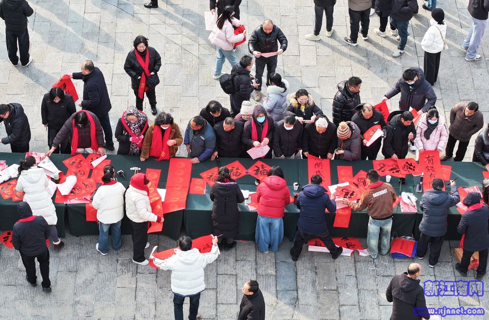 “城门挂春联”是归家的信号,更是团圆的期盼。现场一位带着孩子的母亲轻声诵读春联,温柔叮嘱:“爸爸就要回来了!”这份暖心的团圆期待,通过交汇点新闻客户端、新华日报视频号、“金湖发布”等平台直播,传向千家万户。