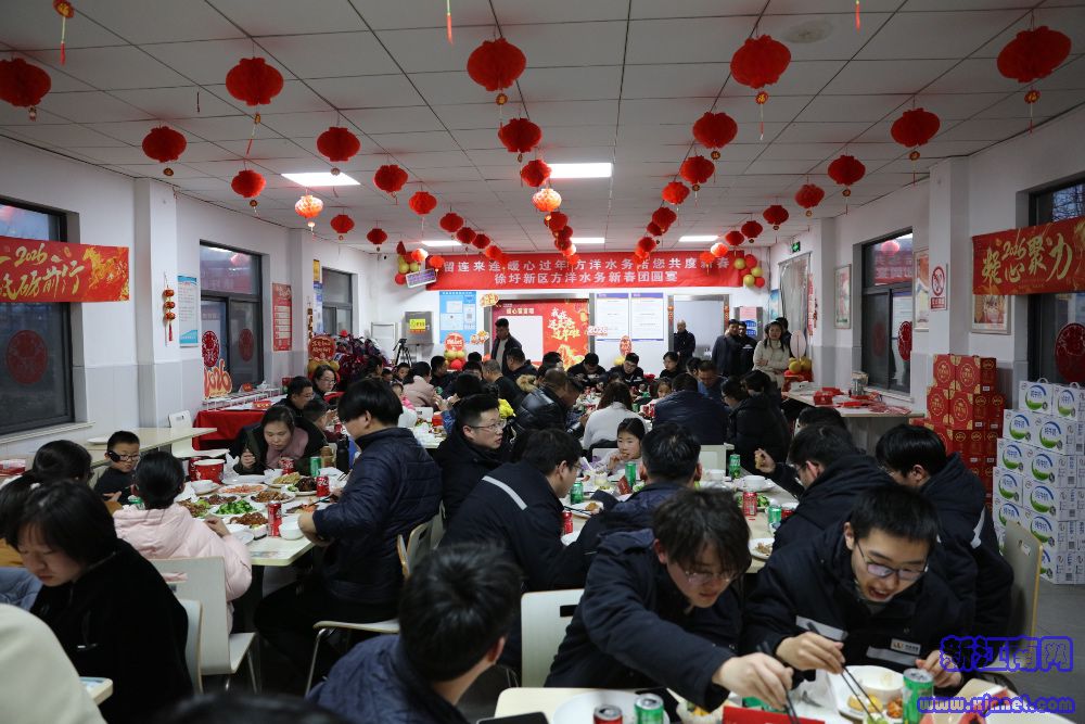 2月13日下午5时,位于徐圩新区的连云港石化产业基地职工食堂张灯结彩,红灯笼、红福字、红窗花透着浓浓的年味。这个春节,基地有80多名外地员工坚守一线。公司特意腾出食堂,摆上十桌“暖心团圆宴”——连云港特色的红烧老鹅、清蒸海鲈鱼、糖醋黄鲫板陆续上桌,糖果、橘子、福袋点缀其间,年味与温情一并端到职工面前。