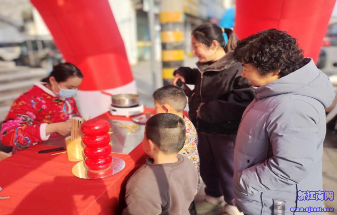柳新镇内另一活动现场,非遗糖画庆新春活动备受群众青睐。身着传统服饰的非遗传承人以勺为笔、以糖为墨,在光洁石板上随心勾勒,手腕轻转间,骏马、祥龙、瑞兔等造型栩栩如生,冷却定型后粘上竹签,一支支晶莹甜美的糖画让孩子们驻足围观、欣喜不已。“我要小马的糖画,今年是马年!”小朋友们拿着心仪的糖画,脸上洋溢着甜滋滋的笑容。家长们纷纷用镜头定格温馨瞬间,现场处处洋溢着童真童趣与新春喜乐。