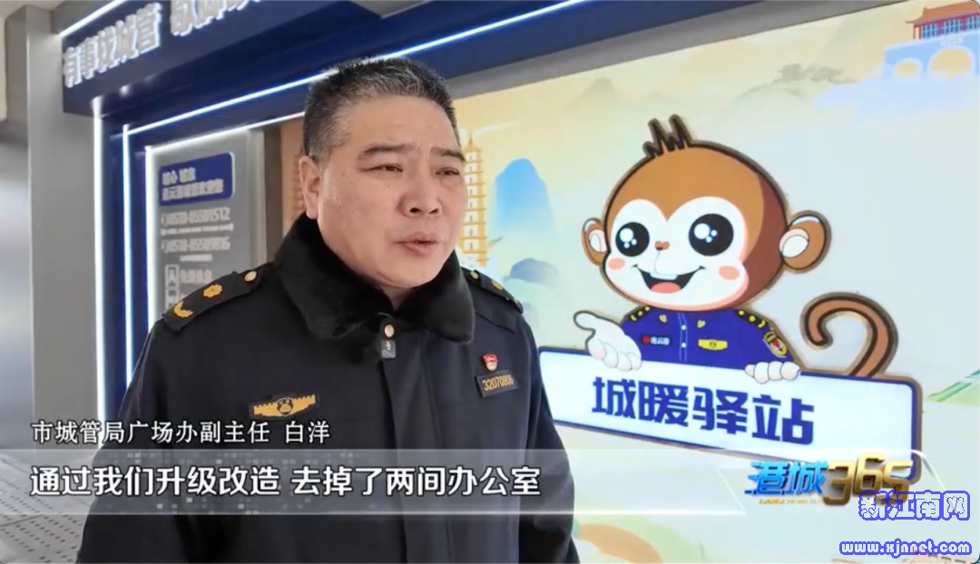 在连云港高铁站西侧入口处,焕然一新的“城暖驿站”让人眼前一亮。门口“有事找城管 歇脚续能量”的标识格外醒目,融入港城文旅特色的卡通形象“La分猴”显得亲切可爱。展示墙上清晰地公示了24小时服务电话,并明确列出驿站的服务功能。