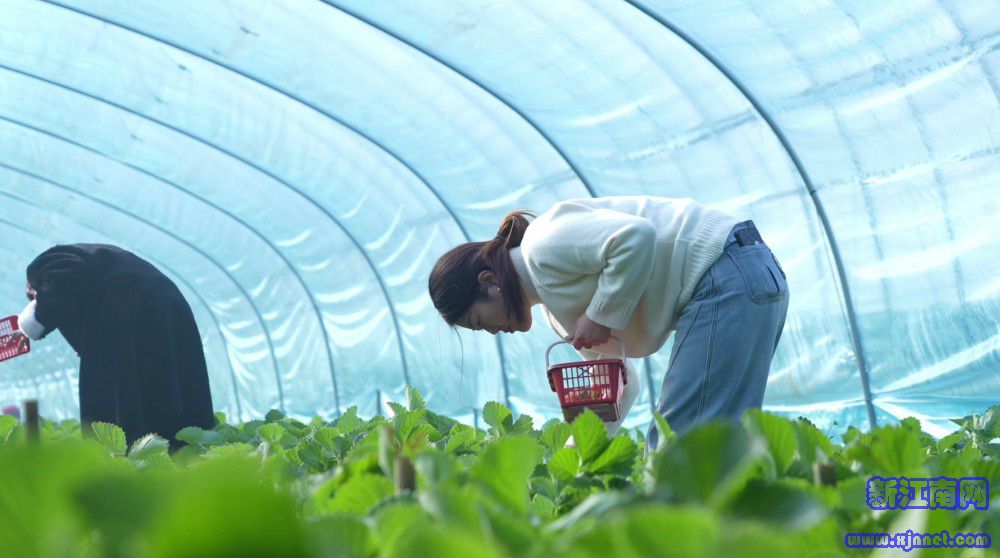 早上的阳光透过大棚薄膜,在泥土上洒下斑驳的光影,村民郑尊亮正弯腰在垄间忙碌,沾着泥土的手指熟练掐下草莓藤上的老叶、干叶。“老叶子耗营养,拾掇干净了,果子才能长得更旺。”说话间,郑尊亮摘下了两颗红彤彤的草莓递了过来,记者一口咬下浓郁香甜的汁水瞬间在嘴里化开。“这是宁玉,早熟品种,个头大、口感好”,郑尊亮笑眯眯地说,“这冬草莓,天越冷,它就越攒糖分,口感是一年中最好的”。
