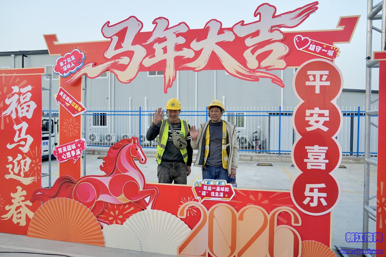 “来,看镜头,3,2,1!”观众席一旁,“马到成功”打卡装置前,苏州工业园区居民张洁银拿着手机,弯着腰,给孩子拍照“打卡”。“这还是头一回在项目工地上听音乐会,不收门票,氛围还布置得这么棒,真好!”在网上看到演出信息后,她特地带着儿子赶来。“我跟孩子说,这次演出是献给春节留守岗位工人们的,正是因为他们的付出,大家以后的出行才会更加方便。”