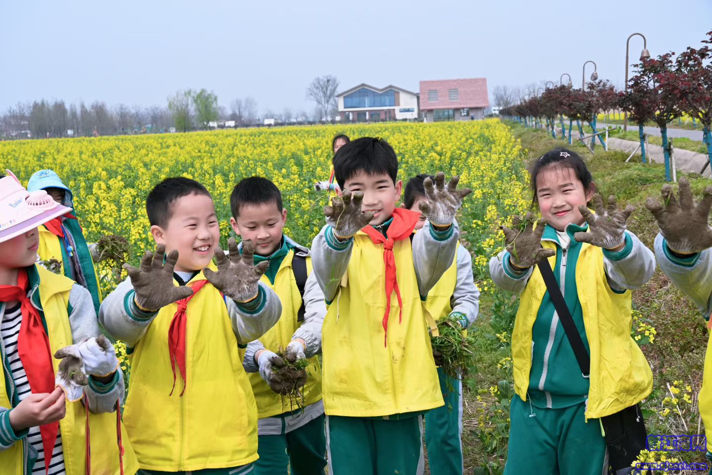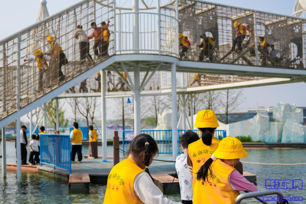 交汇点讯 “老师,油菜花能吸引哪些小昆虫呀?”“咱们常见的蜜蜂、蝴蝶都喜欢油菜花的花粉,它们还是传粉小帮手呢!”4月2日,宿迁市宿城区牛角村欢乐田园度假区的油菜花田里,孩子们围在研学老师身边踊跃提问,稚嫩的声音伴着春风与油菜花香,格外动人。不远处的阡书屋内,参与研学的孩子们在学习制作漆扇,调漆、上色、绘制花纹,一把把色彩鲜亮、图案精美的漆扇在指尖悄然成型。