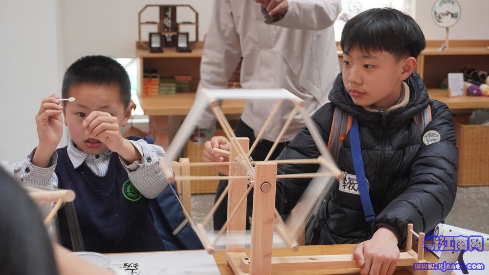 蚕海桑田研学营地也同样掀起了研学热潮。营地依托蚕桑文化,打造蚕桑知识大课堂、古法缫丝体验、创意手作工坊、DIY美食时光、户外运动项目五大体验板块,让孩子们在泥土芬芳中感悟生命成长,在非遗手作中触摸传统匠心。“以前只在课本上了解蚕桑,亲手操作才体会到古人的织造智慧。”非遗体验区内,游客亲手体验缫丝和织造技艺。