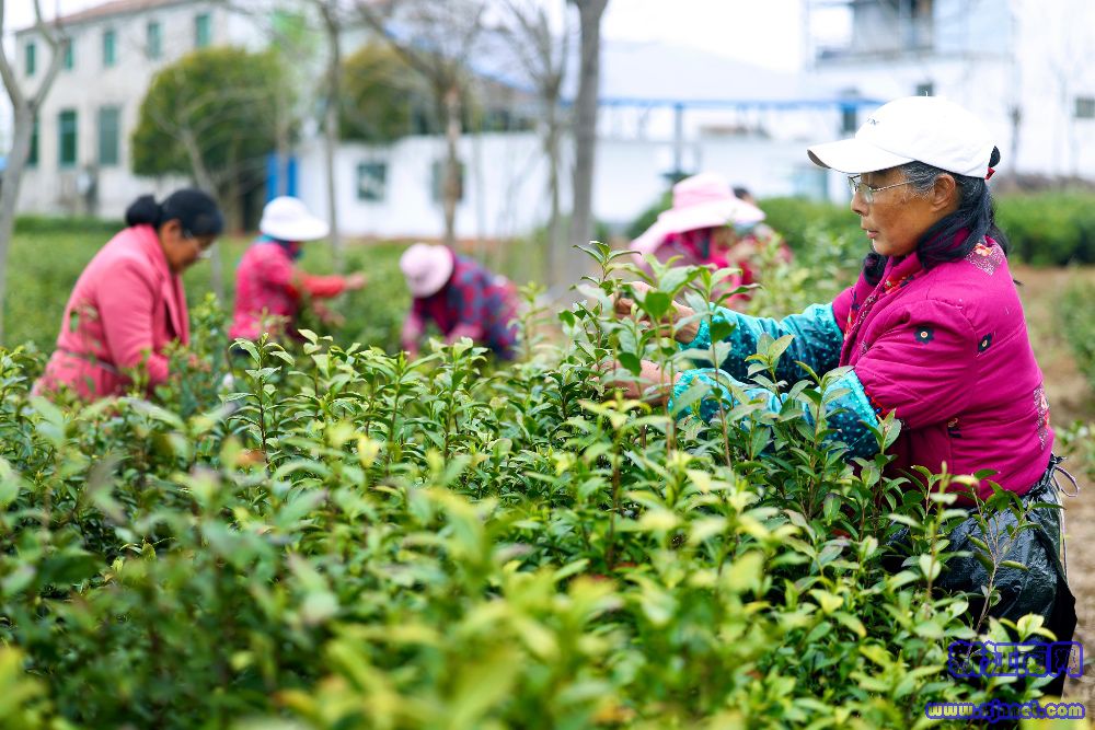 一叶知乡愁,一茶见天地。近几日,正是“明前茶”采收的黄金期。4月3日上午,南京江北新区双山村林雾茶叶专业合作社茶园里,鸟鸣啁啾,雾气氤氲。几名茶农头戴草帽、腰挎竹篓,手指在茶树枝头轻轻一捏、一掰、一提,嫩绿的一芽一叶便纷纷落入篓中,带着晨露,散发着清香。