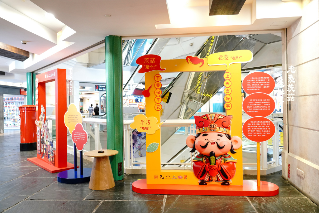 年画登上球形屏的同时,“欢乐中国年·浓郁上海味”2026年春节主题展览也走进美罗城,在1楼-5楼同步展出。活动现场设置国潮游戏Cosplay、打卡、猜谜、非遗体验等互动环节,还有米哈游原神“派蒙”现场与观众“快问快答”展览内容。市民还可现场领取“通关文牒”,在6个点位集章打卡,解锁新春惊喜。