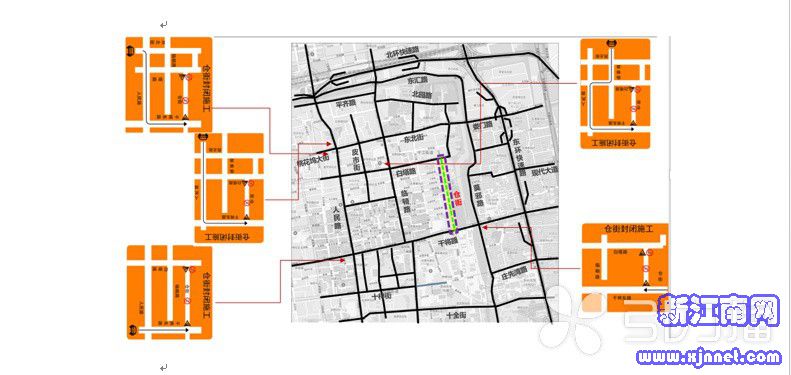 具体为:3月11日至4月30日施工期间,仓街(白塔东路-通济桥)只允许行人和非机动车通行,机动车辆禁止通行。过往机动车辆可从人民路、莫邪路等道路绕行。