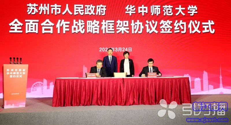 3月24日,苏州市政府与华中师范大学签署全面合作战略框架协议。华中师范大学校长、党委副书记郝芳华,苏州市委副书记、市长李亚平致辞并见证签约。