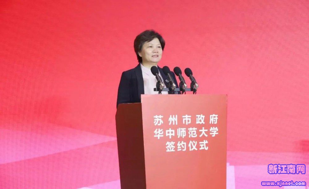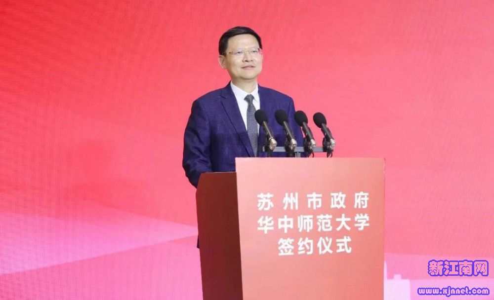 △苏州市委副书记、市长李亚平,华中师范大学校长、党委副书记郝芳华分别致辞并共同见证签约。