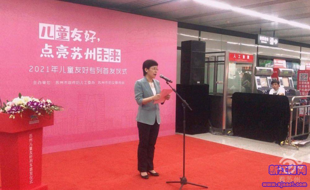 在仪式上,市政府妇儿工委副主席,市妇联主席王燕红介绍了儿童友好城市建设和儿童友好主题专列首发情况,她说:“年初,市政府妇儿工委办公室联合市教育局、市文联举办儿童友好主题活动,向全市公开征集儿童友好城市LOGO、主题歌词以及绘画作品,得到了广大儿童及其家庭的支持。本次地铁专列车厢内的作品全部来自孩子们6595幅投稿作品,体现了苏城儿童对儿童友好城市的向往和憧憬。”